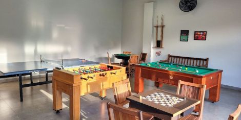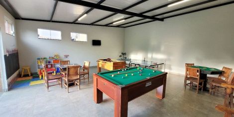 Espaço relaxante, diversão para crianças no playground infantil, piscina climatizada e salão de jogos para o lazer.